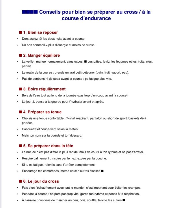 Quelques conseils pour nos jeunes sportifs deux jours avant … ( voir la PJ ).