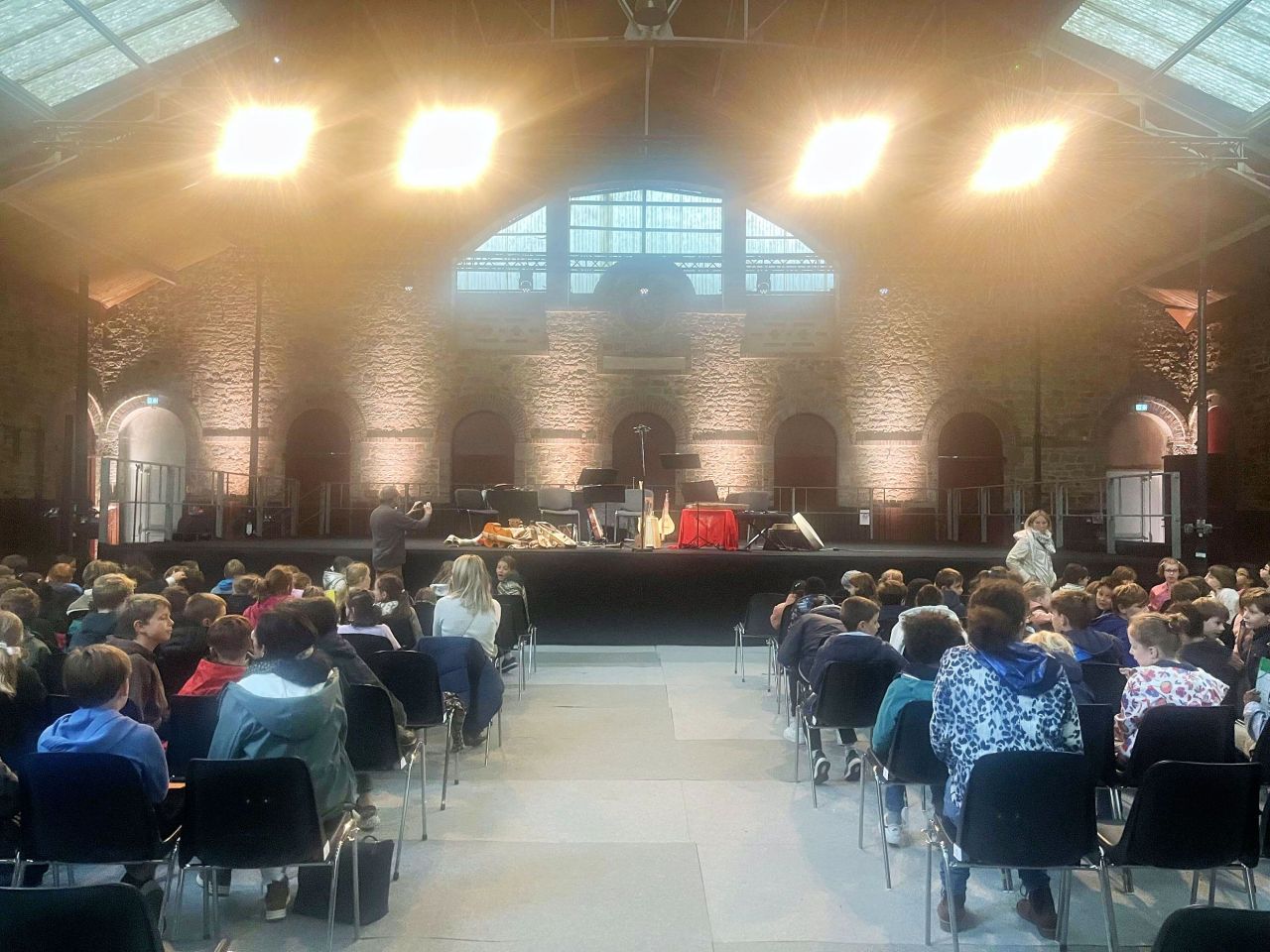 Les élèves de CE2, CM1, CM2 se sont rendus ce matin au haras d’Avranches pour un concert du groupe obsidienne dans le cadre du festival Via Aeterna.